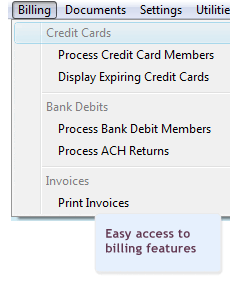 - Process monthly ACH and credit/debit card payments directly through selected payment processors